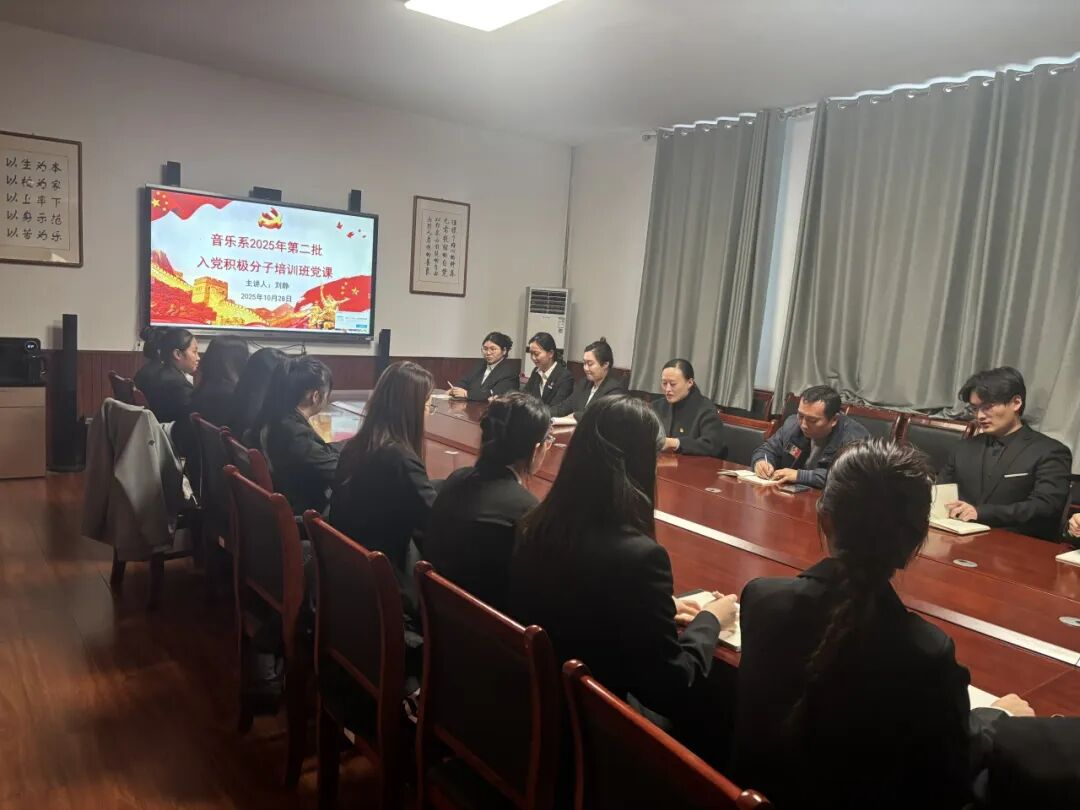 为深化入党积极分子的理想信念教育,引导青年学子厚植爱党情怀、明确成长方向,10月28日,音乐系于党员活动室组织开展入党积极分子专题培训会,音乐系学生党支部书记刘川主持会议,音乐系党总支书记刘静主讲党课,第二批入党积极分子全体参会,围绕“信仰·成长·担当”核心主题,通过“解疑+互动”形式深化学习成效。