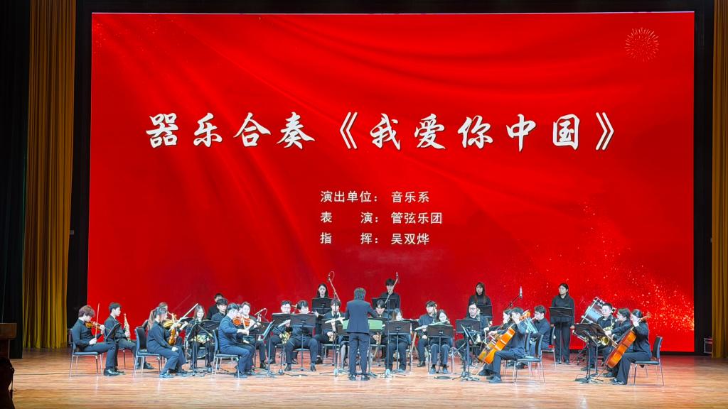 开场在管弦乐团带来的器乐合奏《我爱你中国》中正式启幕,奏响对祖国的深情礼赞,瞬间点燃现场氛围;朗诵《我是老师》诠释了教师职业的责任与荣光,引发在场教育工作者的强烈共鸣。重唱《童年》搭配情景剧表演,唤起全场对青春岁月的回忆;串烧《活力全开》及舞蹈《走进光里》,展现了淄师学子蓬勃的青春朝气;儿童歌舞剧《送你一朵小红花》尽显育人的温情;模特走秀《春风化雨》展现了淄师多学科的育人魅力;重唱《亲爱的你啊》,歌舞结合传递出人与人之间的真挚情感;二胡独奏《长城随想曲》第二乐章——《烽火操》,悠扬的二胡声中蕴含着深厚的家国情怀。汇报会最后,全场最后共同参与合唱《歌唱祖国》,熟悉的旋律回荡在现场,将氛围推向高潮,汇报会也在这庄严而热烈的歌声中圆满落幕。