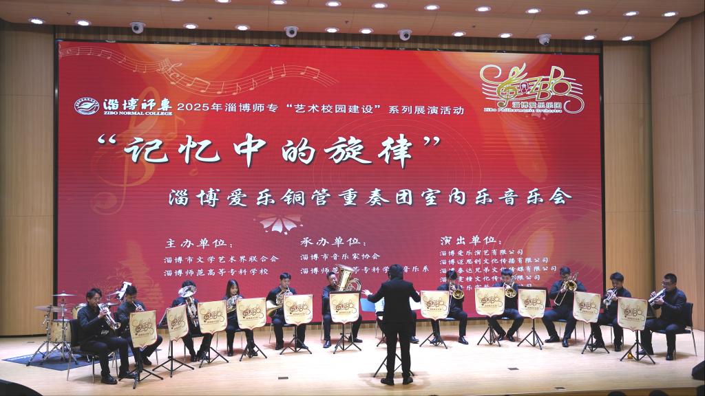 2025年12月15日19:00,“记忆中的旋律”淄博爱乐铜管重奏团室内乐音乐会在淄博师专学术交流中心音乐厅成功举办。本场音乐会由淄博市文学艺术界联合会与淄博师专主办,淄博市音乐家协会与淄博师专音乐系承办,是推进高雅艺术进校园、深化校地文化交流的重要活动。