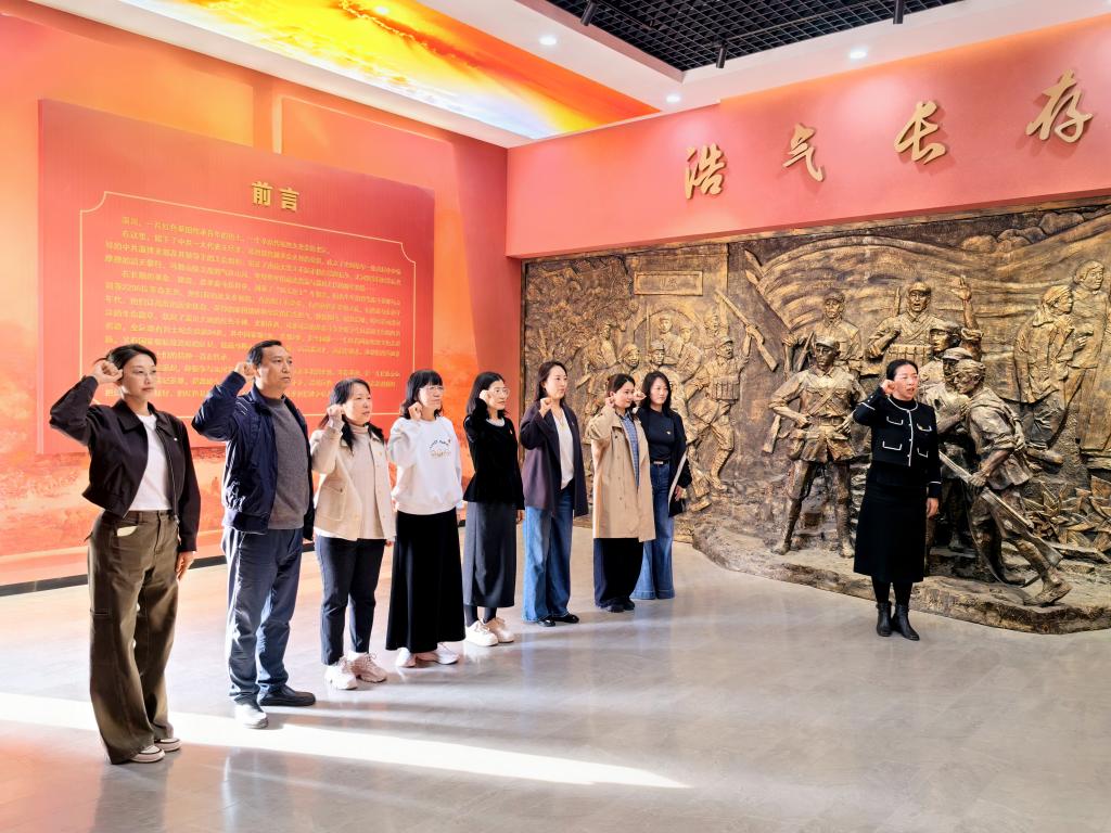 苍松翠柏环绕下,烈士纪念碑庄严肃穆,党员和入党积极分子肃立碑前,向英勇献身的革命先烈默哀致敬,缅怀其不朽功绩。大家以朴素真挚的方式寄托哀思,感悟先烈无私奉献、忠诚报国的崇高风范。随后所有人员前往革命历史纪念馆,教师党员面向党旗重温入党誓词,既是对先烈的庄严告慰,也是党员们不忘初心、牢记使命的坚定承诺,进一步强化了责任与宗旨意识。在纪念馆内,大家认真驻足观看历史图片、文献资料和实物展品,深入了解淄川人民在党的领导下,为争取民族独立和人民解放所经历的艰苦卓绝奋斗历程,在回望历史、缅怀先烈中接受了一次深刻的革命传统教育和触及灵魂的精神洗礼。
