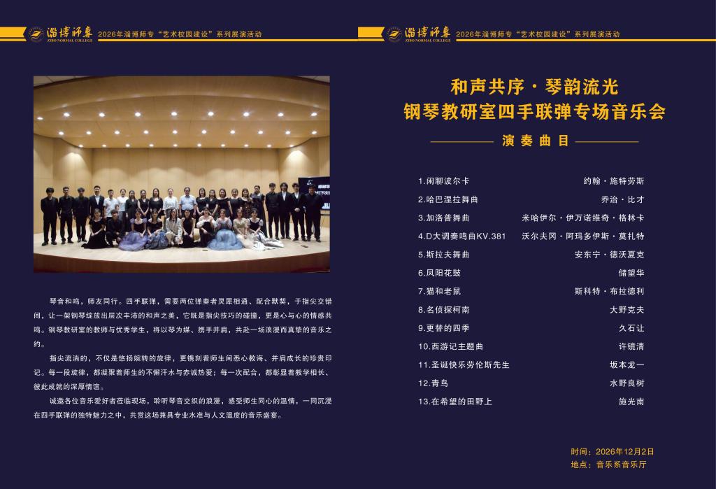 2026年淄博师专“艺术校园建设”系列展演活动节目单发布